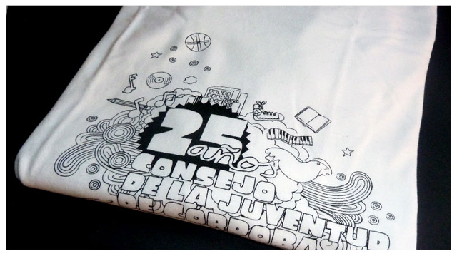 To celebrate the 25th birthday of the Youth Council of Cordoba we created this corporate identity and some birthday presents like this shirt. The project was developed in the agency Xul.